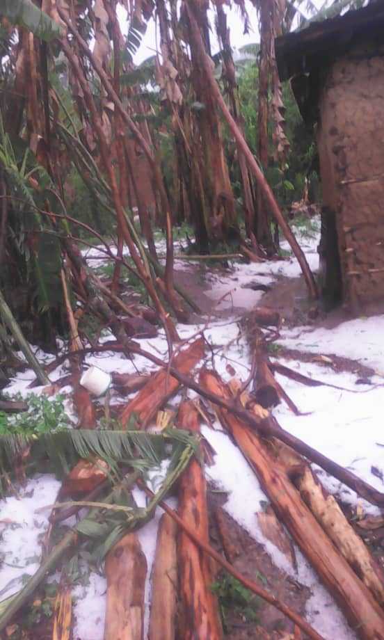 Heavy rains accompained with hailstorm on Wednesday afternoon destroyed crops and houses in Rubuguri subcounty, Kisoro district.  A total of 445 people from 65 households in the villages of Rushaga, Higabiro and Kasheija have been affected. The affected residents are now in fear that if this continues they won’t be able to harvest anything from their gardens…