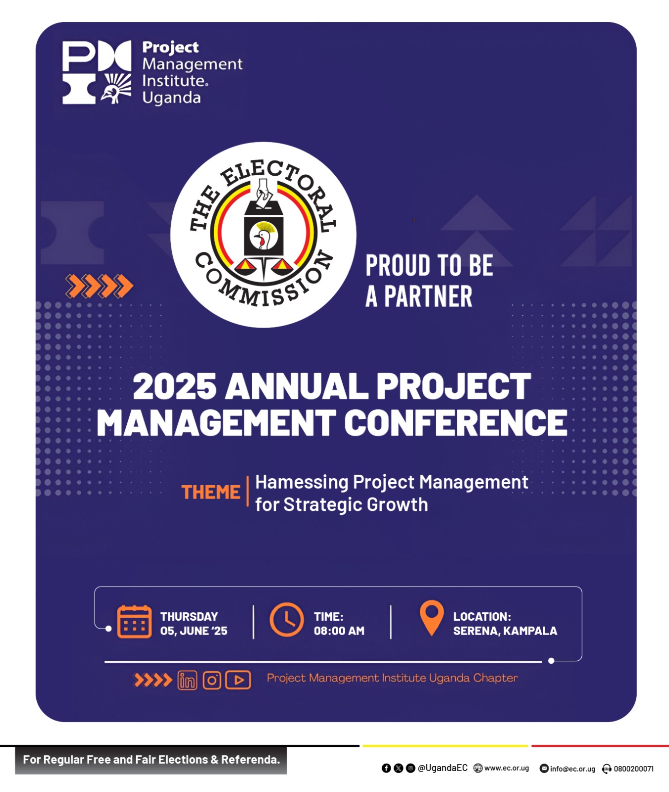 Today marks a major milestone in Uganda’s journey toward strategic development, as the Electoral Commission (EC) officially partners with the Project Management Institute Uganda Chapter (PMI Uganda) for the 2025 Annual Project Management Conference. The event is being held under the powerful theme, “Harnessing Project Management for Strategic Growth,” highlighting the critical role of project management in national progress.